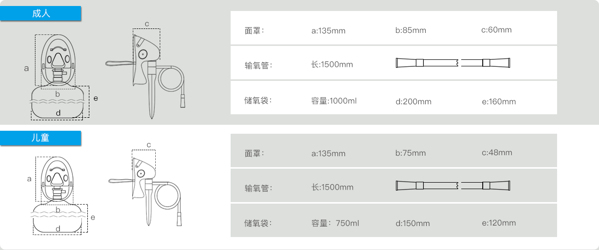 2. The product consists of an oxygen mask, an oxygen storage bag, a one-way valve, oxygen tubes and special connectors, and is packaged individually.