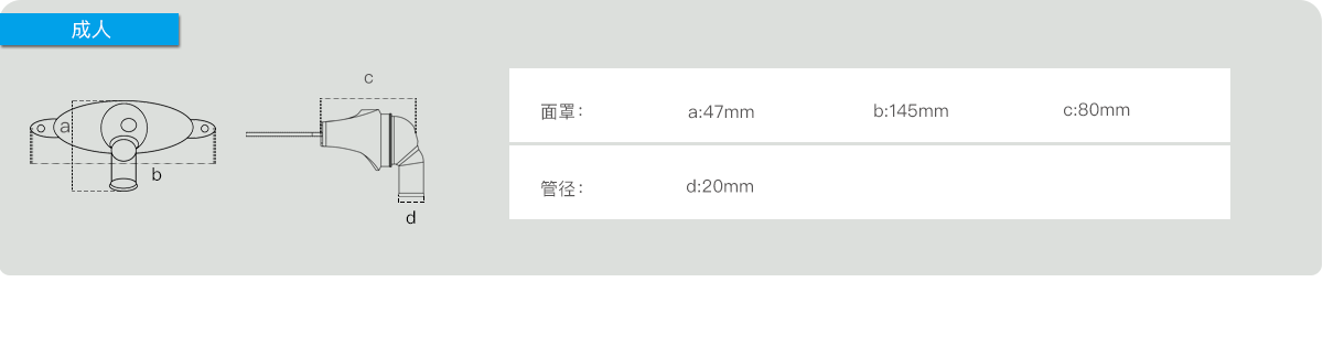 2. 產(chǎn)品由氣管切開面罩、圓蓋、彎管接頭組成。