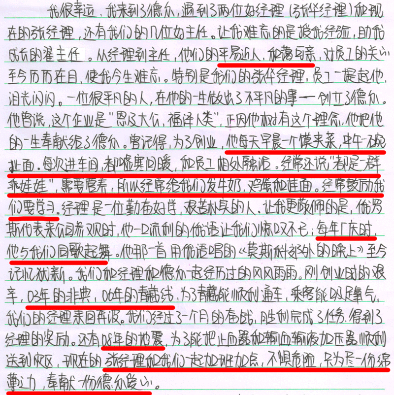 08年北京奧運(yùn)會(huì)前期,我們的產(chǎn)品入選了,需要加急、加大對(duì)產(chǎn)品的檢測(cè),記得有一次結(jié)果出來(lái)的比較晚,張總經(jīng)理一直陪著我們一起等待結(jié)果,結(jié)束之后又找車(chē)把我們安全的送回家。當(dāng)時(shí)領(lǐng)導(dǎo)對(duì)待任何事情都親力親為,讓我很受感染。各項(xiàng)工作都在有條不紊的進(jìn)行著,讓我學(xué)到很多書(shū)本上沒(méi)有的知識(shí),更多的是認(rèn)識(shí)到自己身上的責(zé)任。