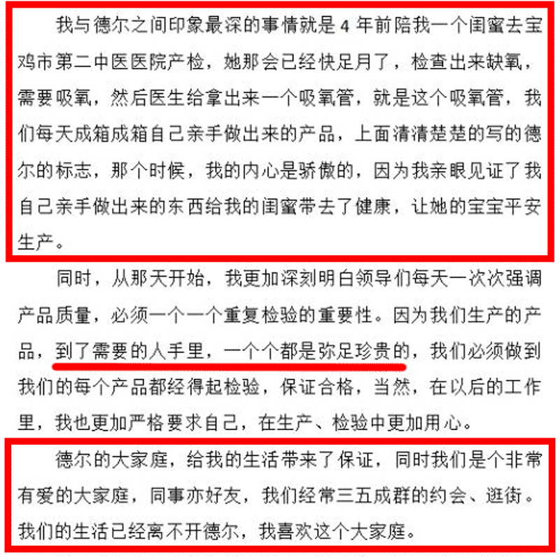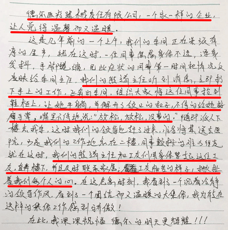 從2016年4月1日加入德爾這個(gè)大家庭起至今,已有四年多了。剛進(jìn)這個(gè)廠什么都不知道,有些產(chǎn)品是干什么用的都不知道。后來(lái),家里人生病住院了,我去探望才發(fā)現(xiàn)他們使用的是我們廠生產(chǎn)的產(chǎn)品,當(dāng)我看到我們的產(chǎn)品的時(shí)候感到很自豪。
