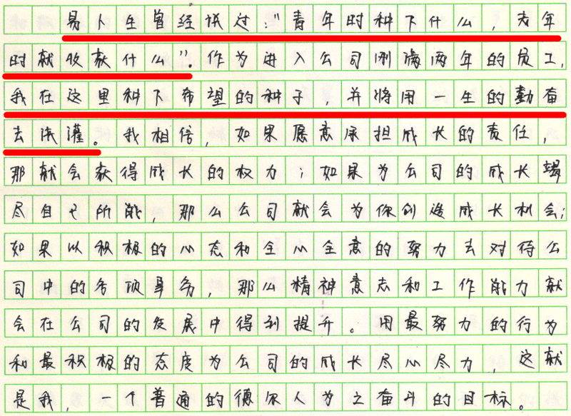 青春應(yīng)該做什么?既然擁有了人生最寶貴的歲月,那么,在這樣的日子里,我們應(yīng)該做些什么呢?現(xiàn)在公司給我們提供了一個(gè)表演的舞臺(tái),但能不能譜寫出美妙華麗的樂章,就靠自己了。青春要從平凡的職業(yè)做起,從微不足道的小事做起;青春要從艱苦的奮斗做起,從無私的奉獻(xiàn)做起;青春要從愛崗敬業(yè)做起,從盡職盡責(zé)做起;青春的內(nèi)涵如此豐富,青春的色彩如此斑斕,每一個(gè)人都應(yīng)該認(rèn)真把握青春的美好時(shí)光,讓她在平凡的崗位上發(fā)光,讓她在艱苦的奮斗中發(fā)光,讓她在辛勤的汗水里發(fā)光,讓她在無私的奉獻(xiàn)里發(fā)光,每一個(gè)人都應(yīng)該擁有一段無悔的青春歲月。