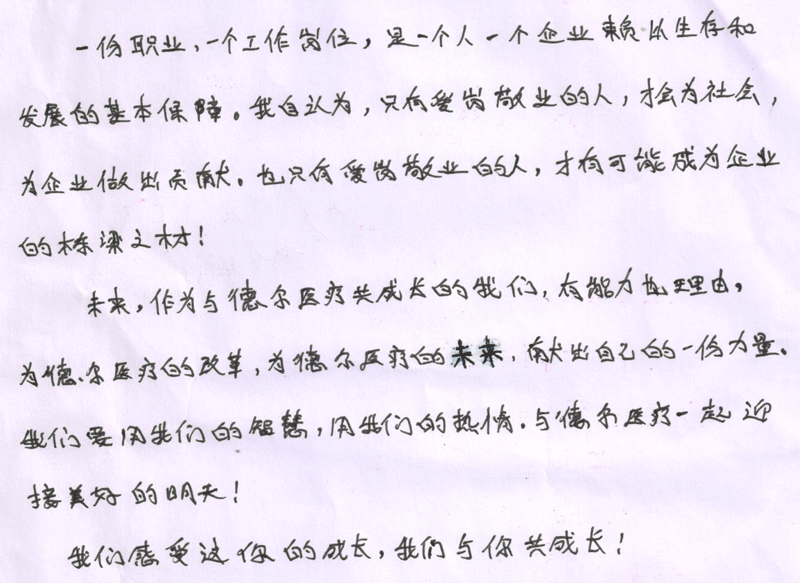 我們從一個滿臉稚氣的青春少女來到德爾,到現(xiàn)在獨當(dāng)一面處理種種業(yè)務(wù)到處世,是我們用我們最平凡的雙手和不放棄的精神創(chuàng)造了德爾見證了德爾今天的不平凡,德爾也用它的成長史教會我們知恩、感恩、堅持、貢獻(xiàn)的精神。